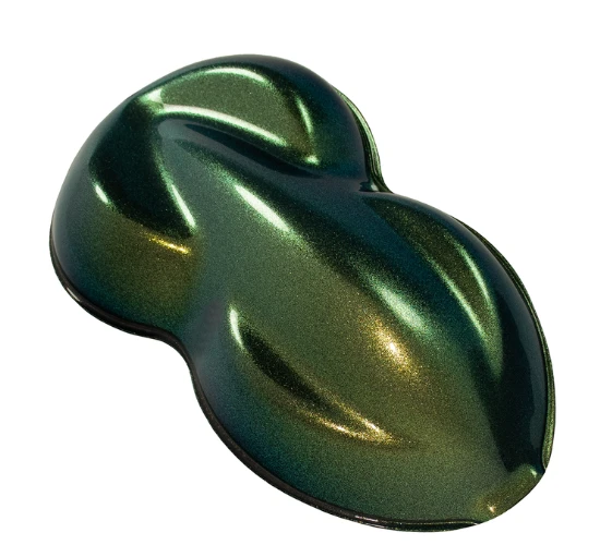 Our Darkness Series Chameleon Basecoat Kits are uniquely formulated to give you a Dark and Dramatic Chameleon Tri-coat Pearlescent Color Change Effect in a user friendly system. Darkness Series Coarse Dragon Color flips from a sparkling gold, to silver, onto light blue.