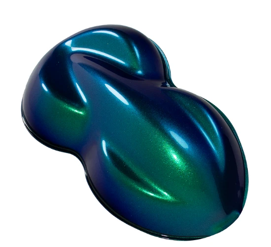Our Twilight Series Chameleon Basecoat Kits are uniquely formulated to give you a Dark and Dramatic Chameleon Tri-coat Pearlescent Color Change Effect in a user friendly system. Twilight Series Mountain Sky Color flips from a sparkling bright green, to light blue, through darker blue, onto purplish blue.